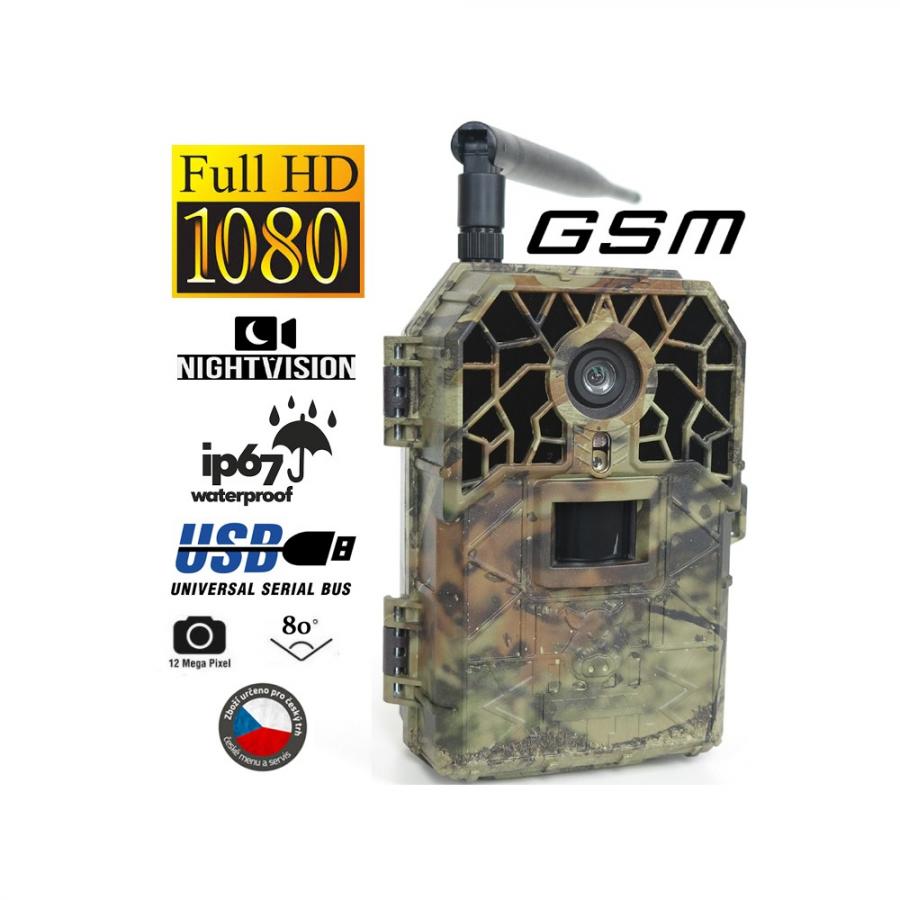Fotopast s GSM modulem a úhlem snímání 80°. Fotopast okamžitě odesílá pořízené snímky na email nebo mobilní telefon. Rozlišení 12 MP a video ve FULL HD kvalitě. Velký LCD displej na přední straně fotopasti a laserové ukazovátko. Skvělé maskování s minimem lesklých ploch. Pokročilé funkce nastavení včetně časovače a časosběru ! Moderní fotopast na zloděje i na zvěř! Model roku 2018 !